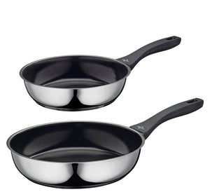 Einzelheiten: Küchenprofi COOK Pfannenset ROMA, 2-tlg., Bratpfannen mit PFAS-freier Antihaftbeschichtung, Mehrschichtboden, für Induktion, 180 °C backofenfest, rostfreier Edelstahl, hoher Rand, Ø 24 und 28 cm
