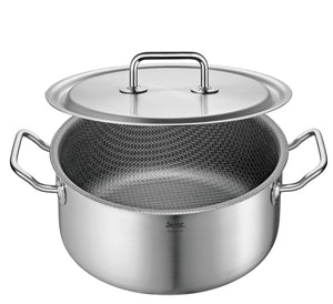 • INNOVATIVES DESIGN - Die erhabene Wabenstruktur aus Edelstahl ist selbst für Pfannenwender aus Metall geeignet, inklusive passendem Edelstahldeckel.